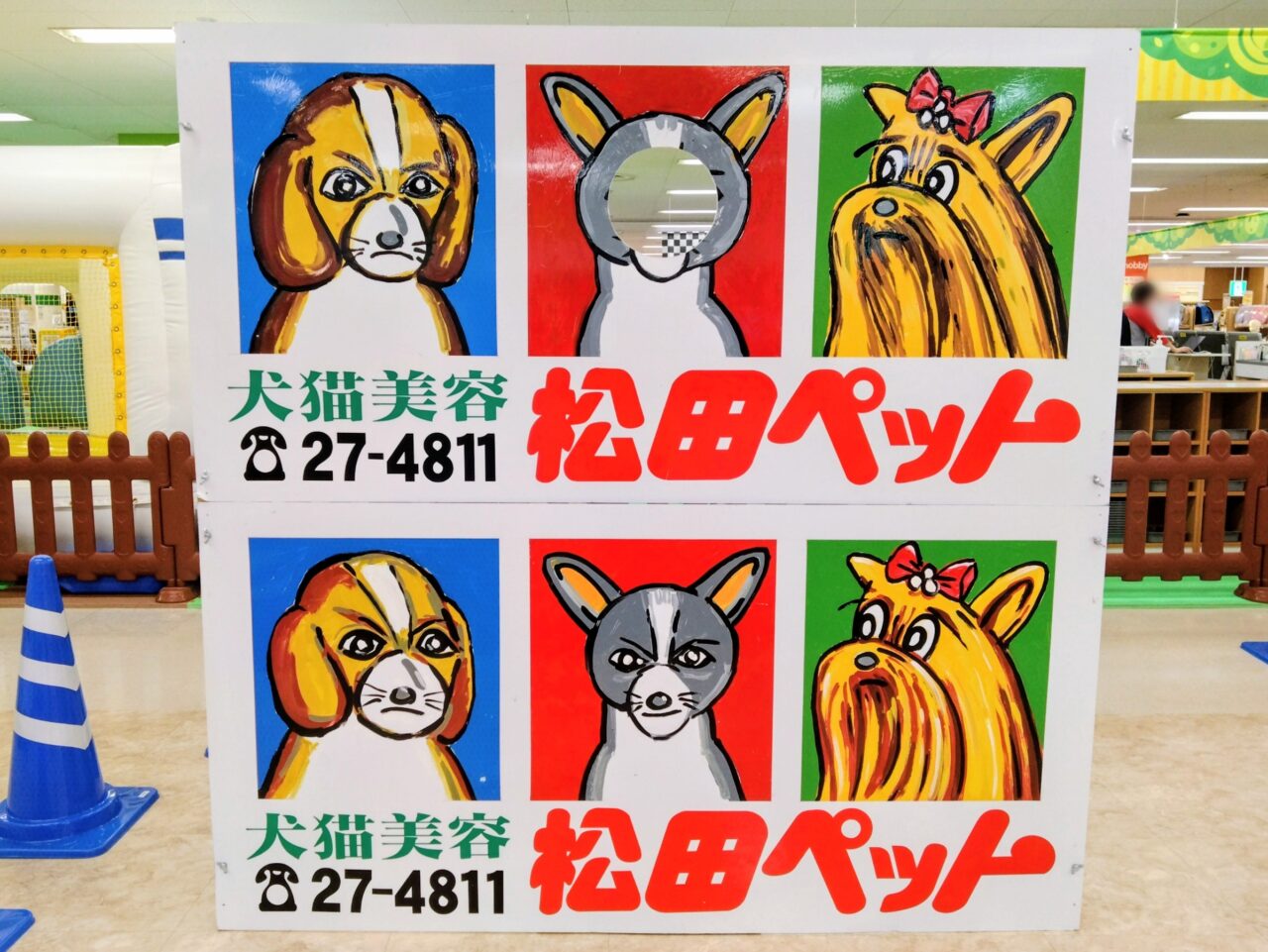 さらに「あそびパーク イオン長岡店」の近くには、松田ペットの看板の顔出しパネルも登場! 真ん中のチワワになりきっちゃいましょう。