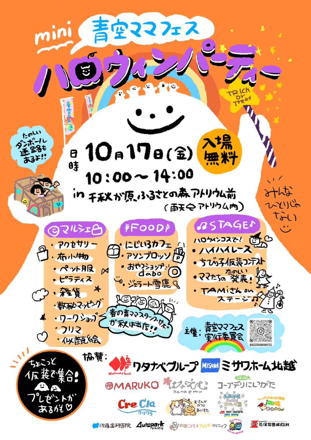 2025年10月17日(金)に「mini青空ママフェス ハロウィンパーティー」が開催されます。開催時間は10:00~14:00です。