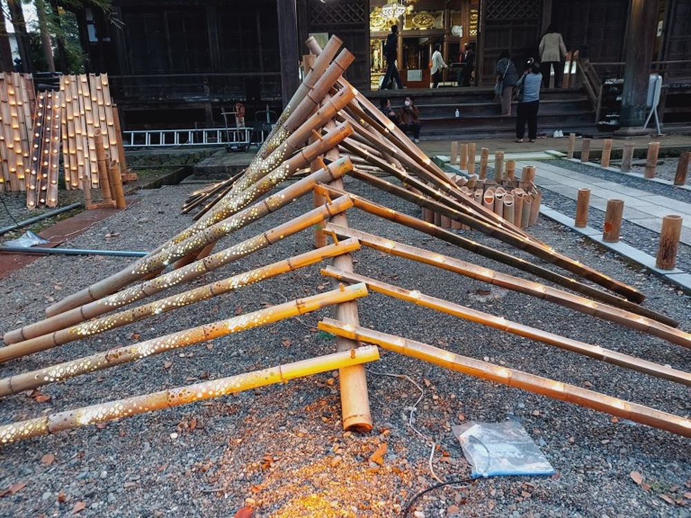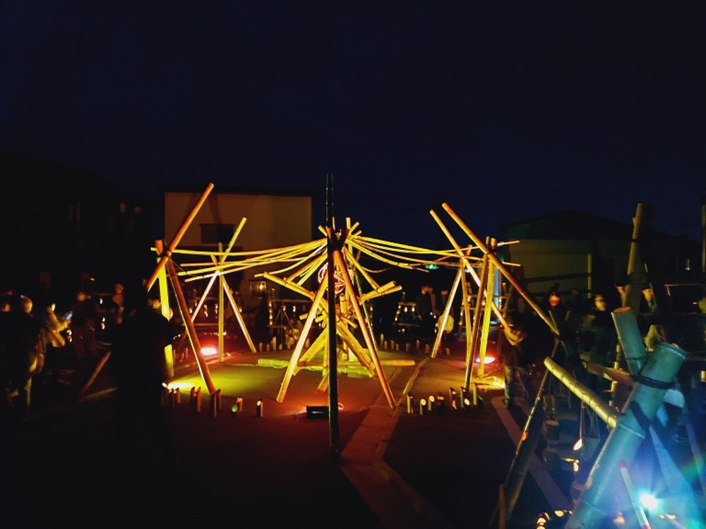 長岡造形大学のエリアでは、竹でできた造形物などの作品展示も。長岡造形大学の学生さんによる企画「ねがいぼし」も開催されます。