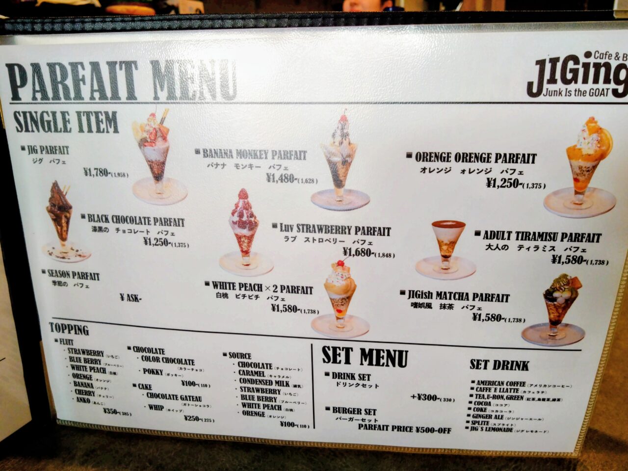 もう1つのメインメニューとしておすすめのパフェは、どれもボリュームたっぷり。こちらもトッピングやセットメニューが選べます。