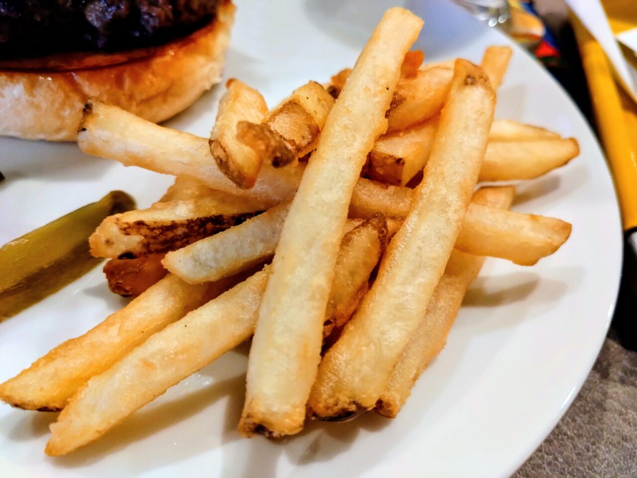おすすめのポテトは不思議なもちもち食感。今回オーダーしなかったオニオンフライも気になるところ。