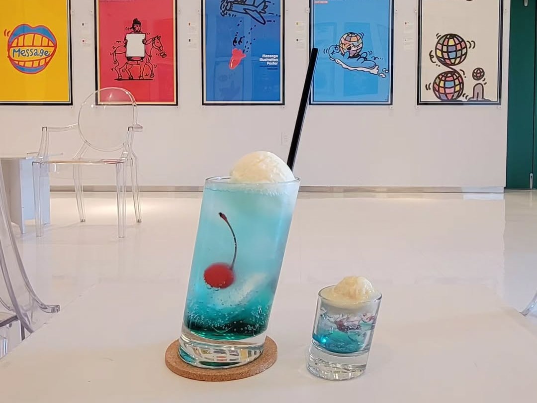 斜めグラスが特徴的な「APMのクリームソーダ」は会場のカラフルなデザインとも相まって、SNSでも超話題。そんな「APMのクリームソーダ」、様々なお店とコラボなどして期間限定メニューもあるんです。