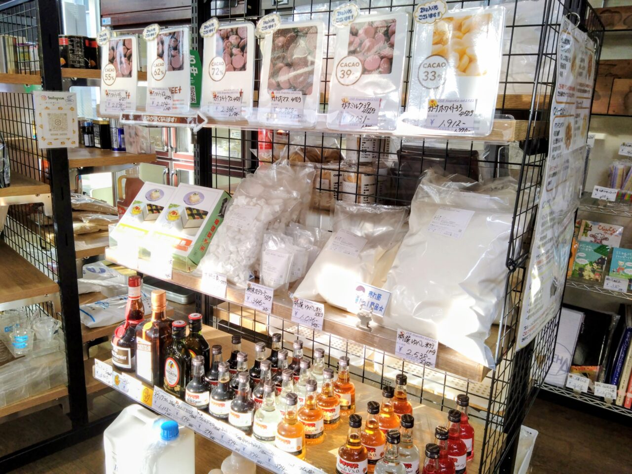 製菓用のチョコレートや業務用の粉類、製菓用のリキュールなどもこちらで購入することができます。
