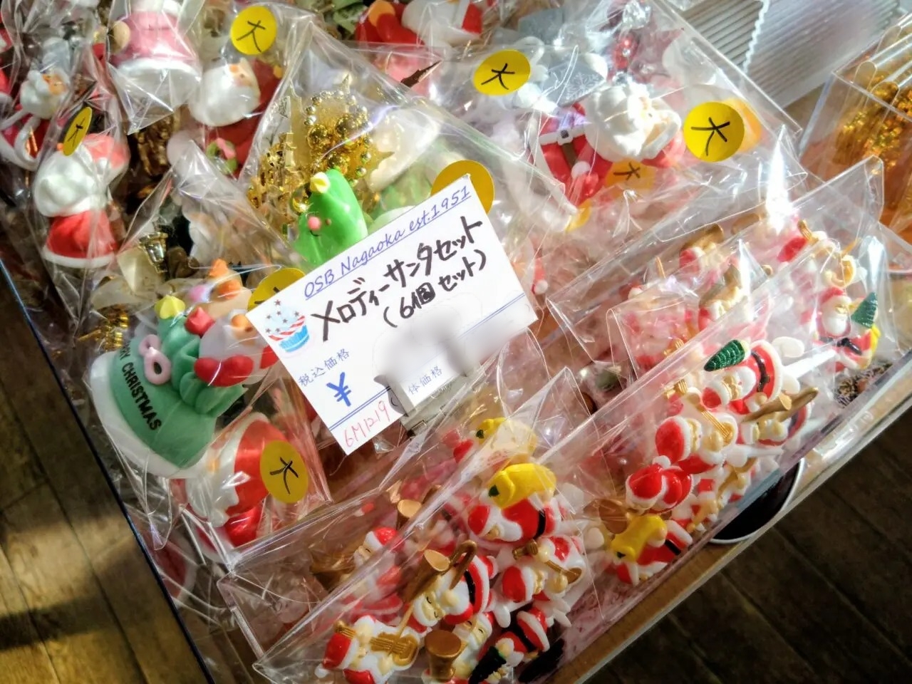卸でもある長部商店さん、時期に合わせておすすめの商品を並べているそうです。この時期はやはりクリスマスものが豊富。