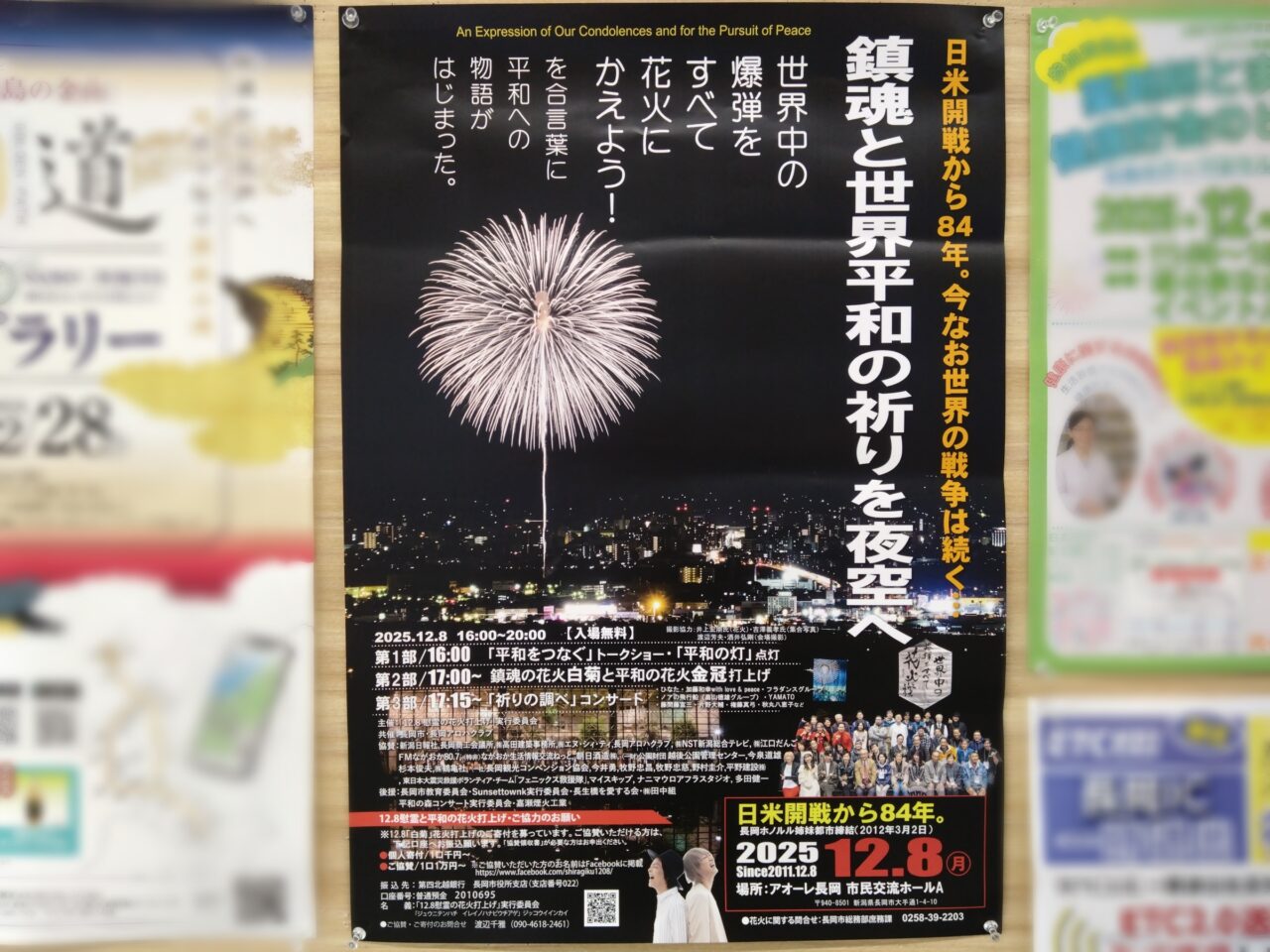 【長岡市】鎮魂と世界平和の祈りを夜空へ。アオーレ長岡ではトークショーやコンサートも開催されます。