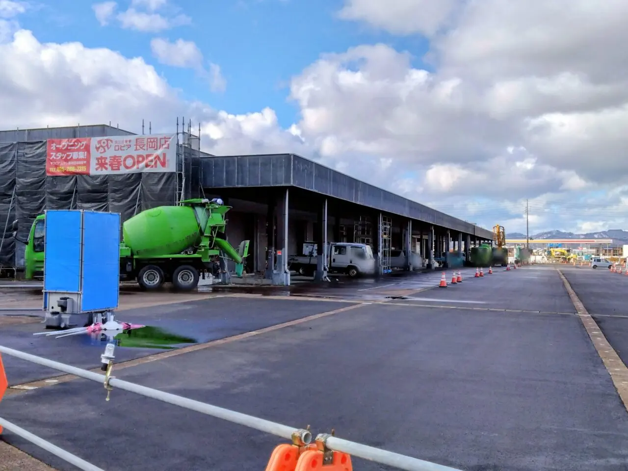 場所はムサシ長岡店が以前まであった跡地です。同じ駐車場スペースには2025年7月にオープンしたばかりの「カラオケまねきねこ 長岡古正寺店」や、2025年1月にオープンした「SWEETS & GIFT Nico(スイーツ&ギフト ニコ)」など話題のお店ばかり。