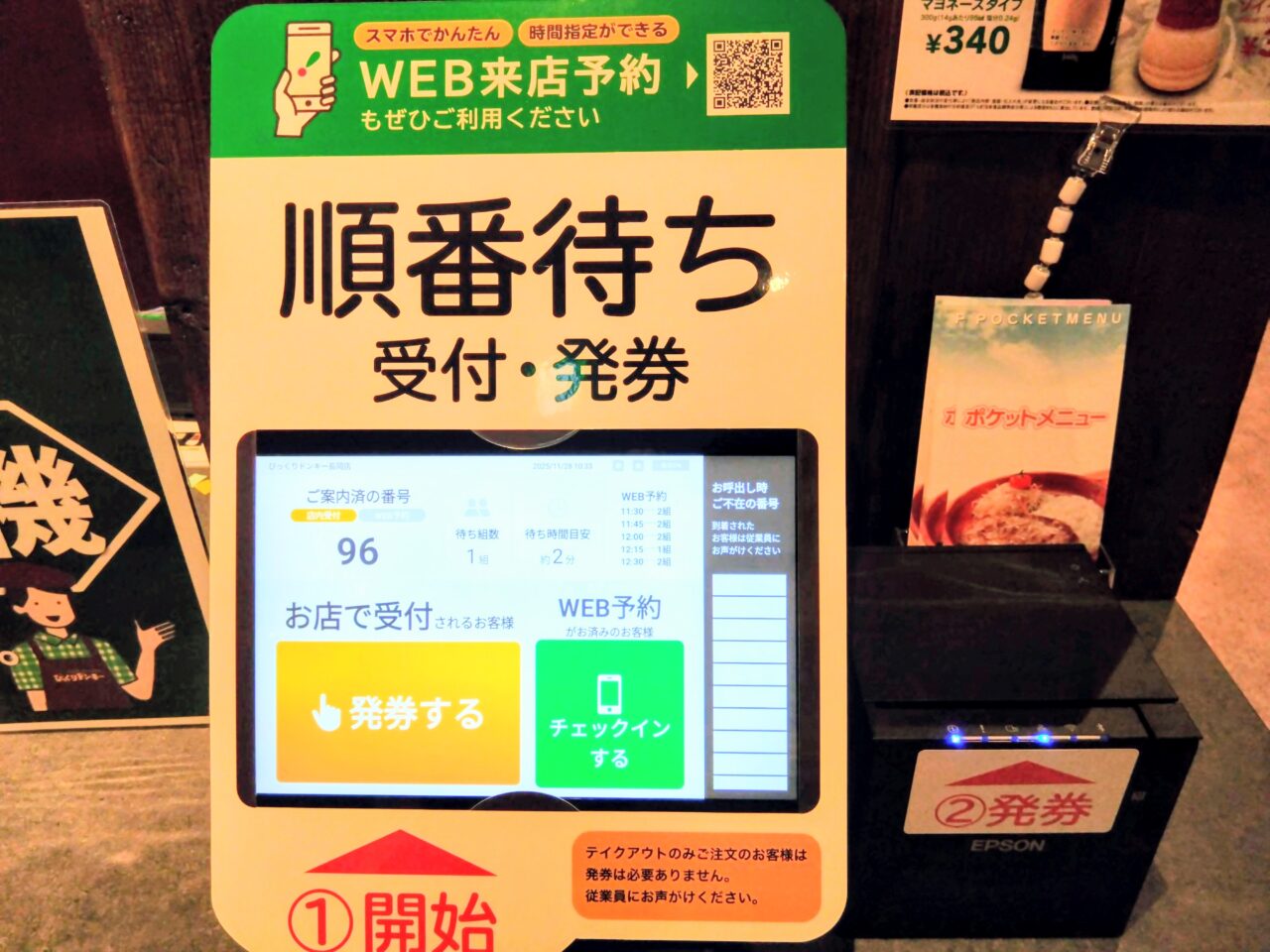 店内に入ったらまずは順番待ちの受付・発券をします。オープンから1ヶ月。ランチタイムは平日でも並んでいる方も多く、まだまだ混雑は続きそうです。