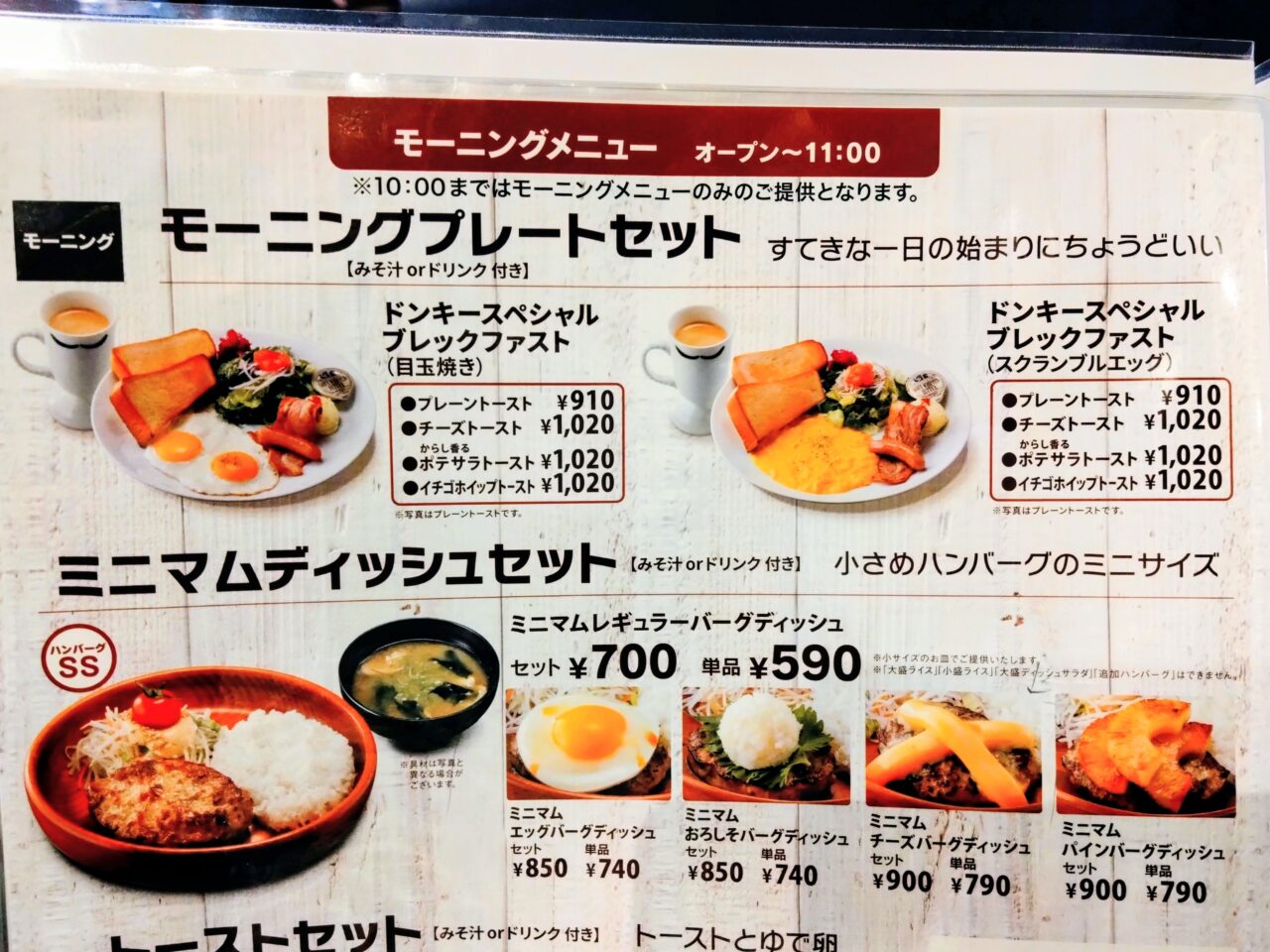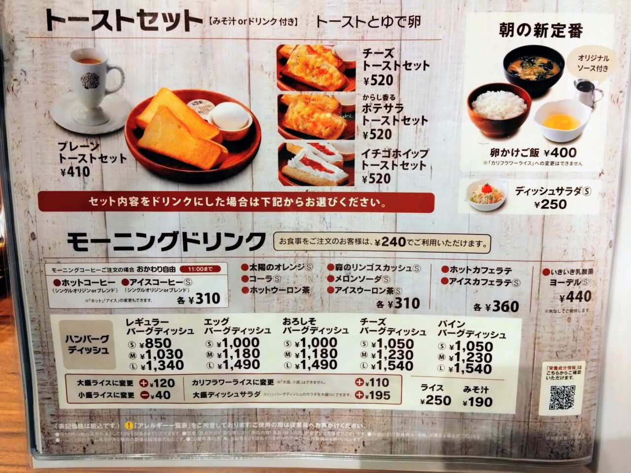 びっくりドンキーといえば、やはり「バーグディッシュ」ですが、以前まで長岡市にあった時にはなかったモーニングメニューに注目していきたいと思います。