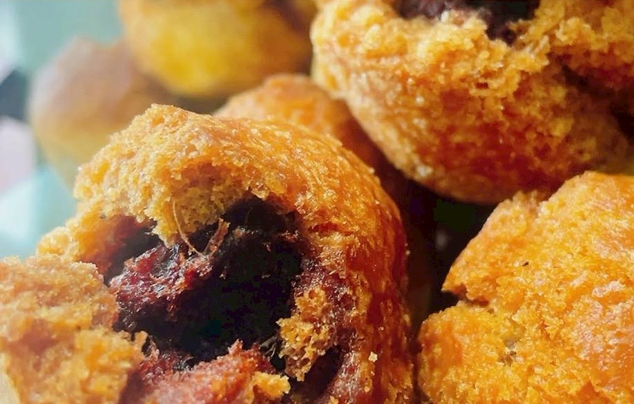 サーターアンダギーの中に特製の紅芋ペーストを贅沢に入れ、温めることで紅芋ペーストがとろけるこちらの商品は主催者のイチオシだそうです。