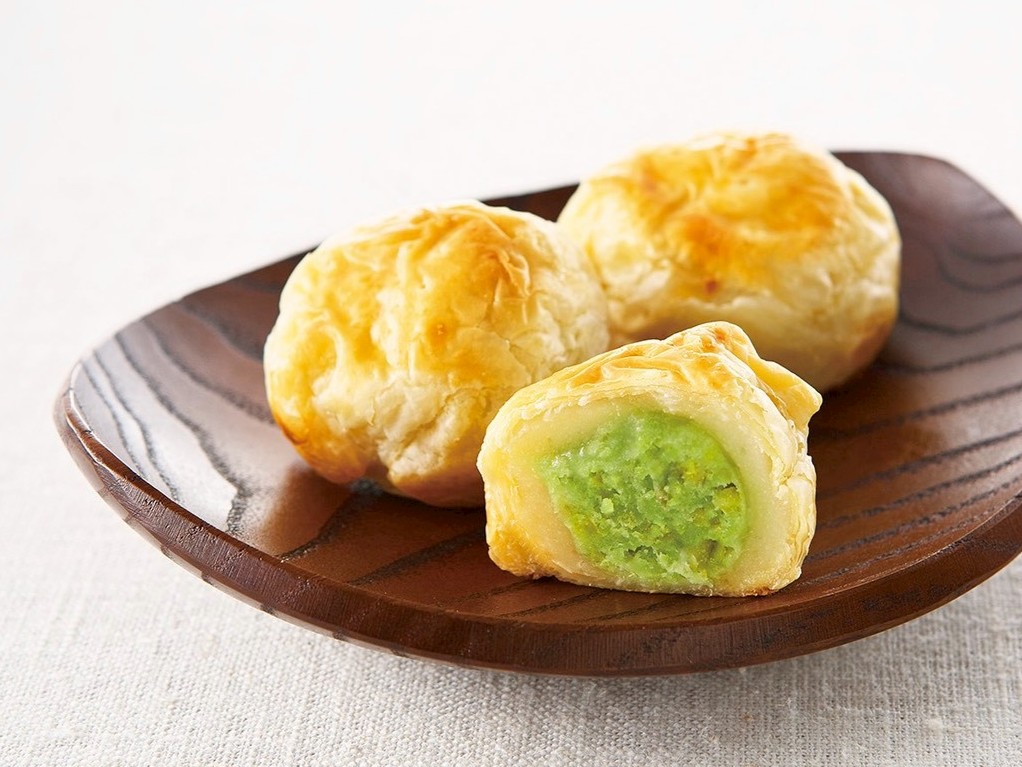 仙台「甘仙堂」名物の「ずんだ餅」に加え、ずんだ餡の大福をパイシートで包んだ手間暇かけたスイーツ「ずんだ餅パイ」も人気商品なので売り切れ必至ですよ。