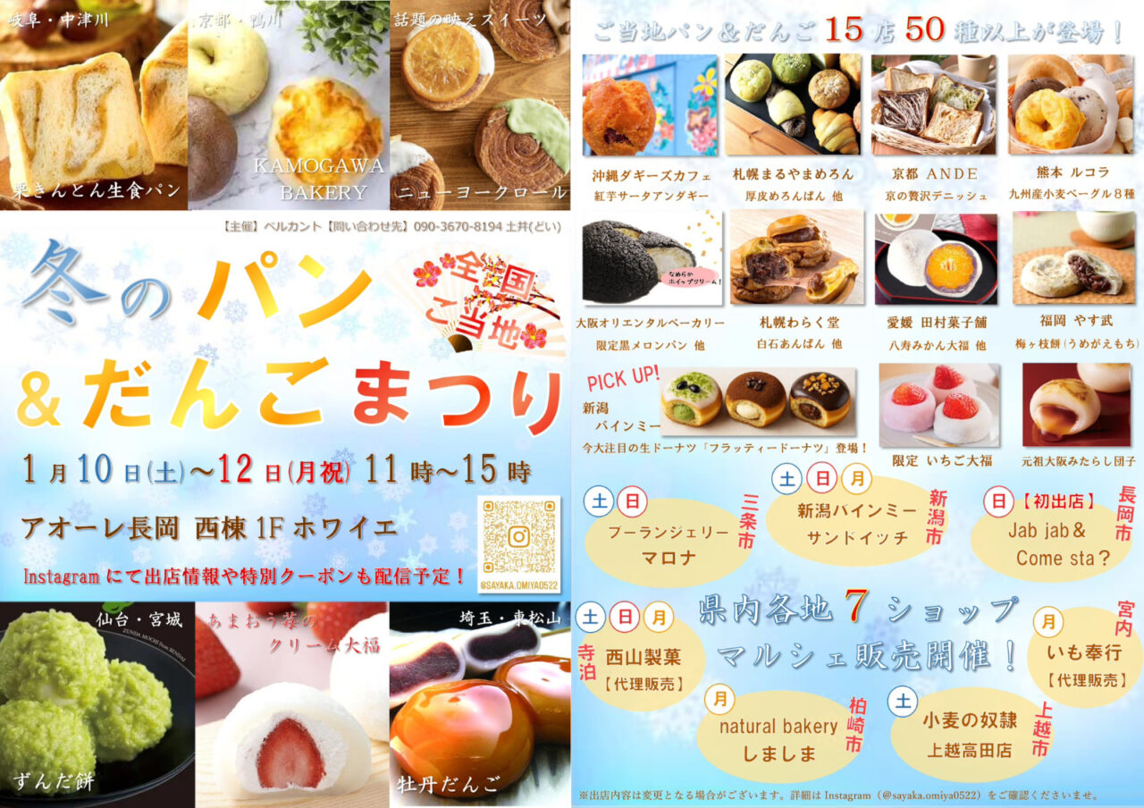 【長岡市】1月10日〜12日にアオーレで「全国ご当地!冬のパン&だんごまつり」が開催されます。