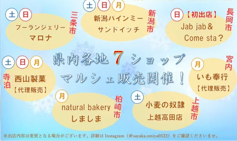 そして今回も限定マルシェが同時開催されます。日替わりで新潟県内さまざまなお店の対面販売が開催されますよ。