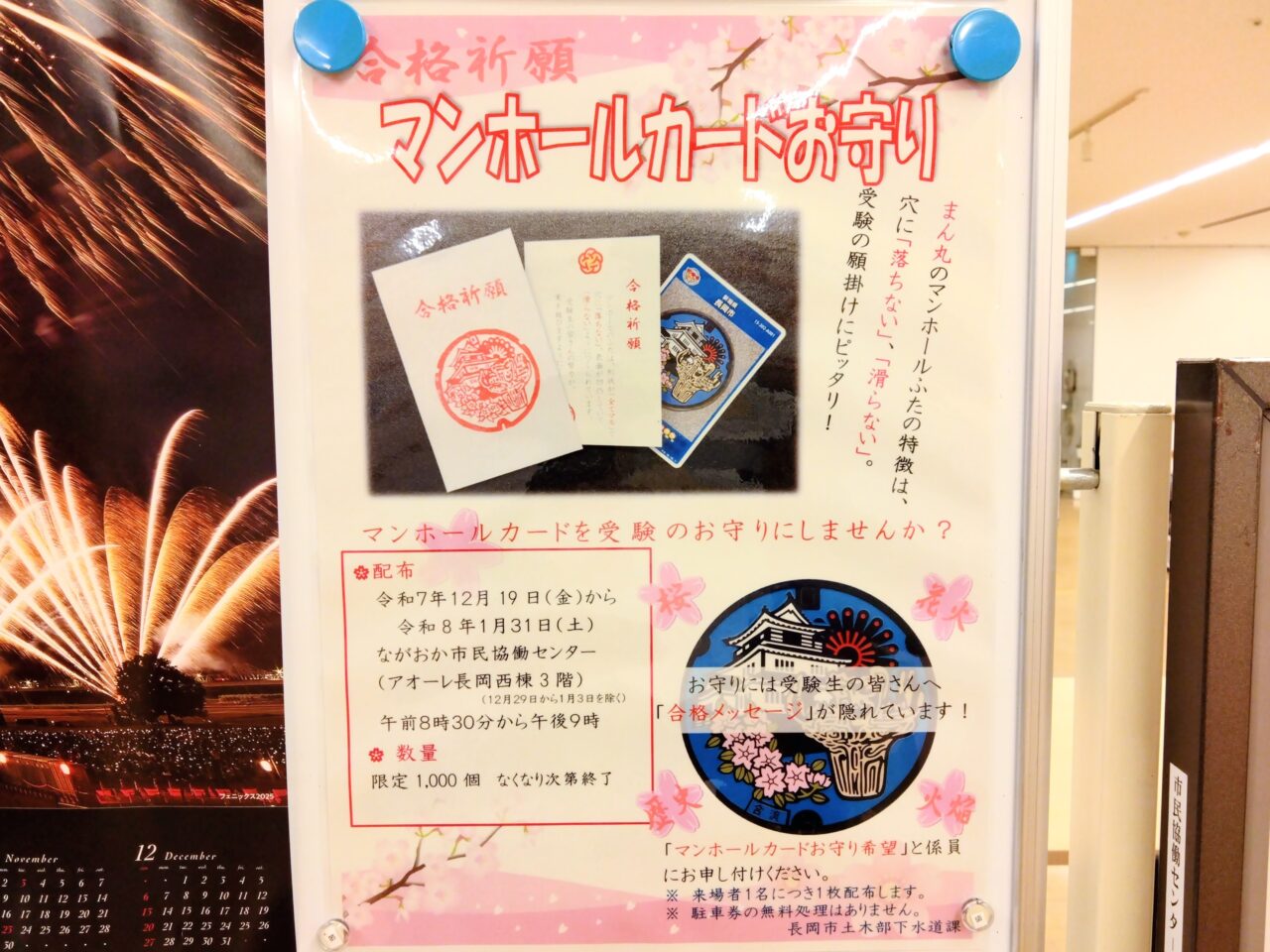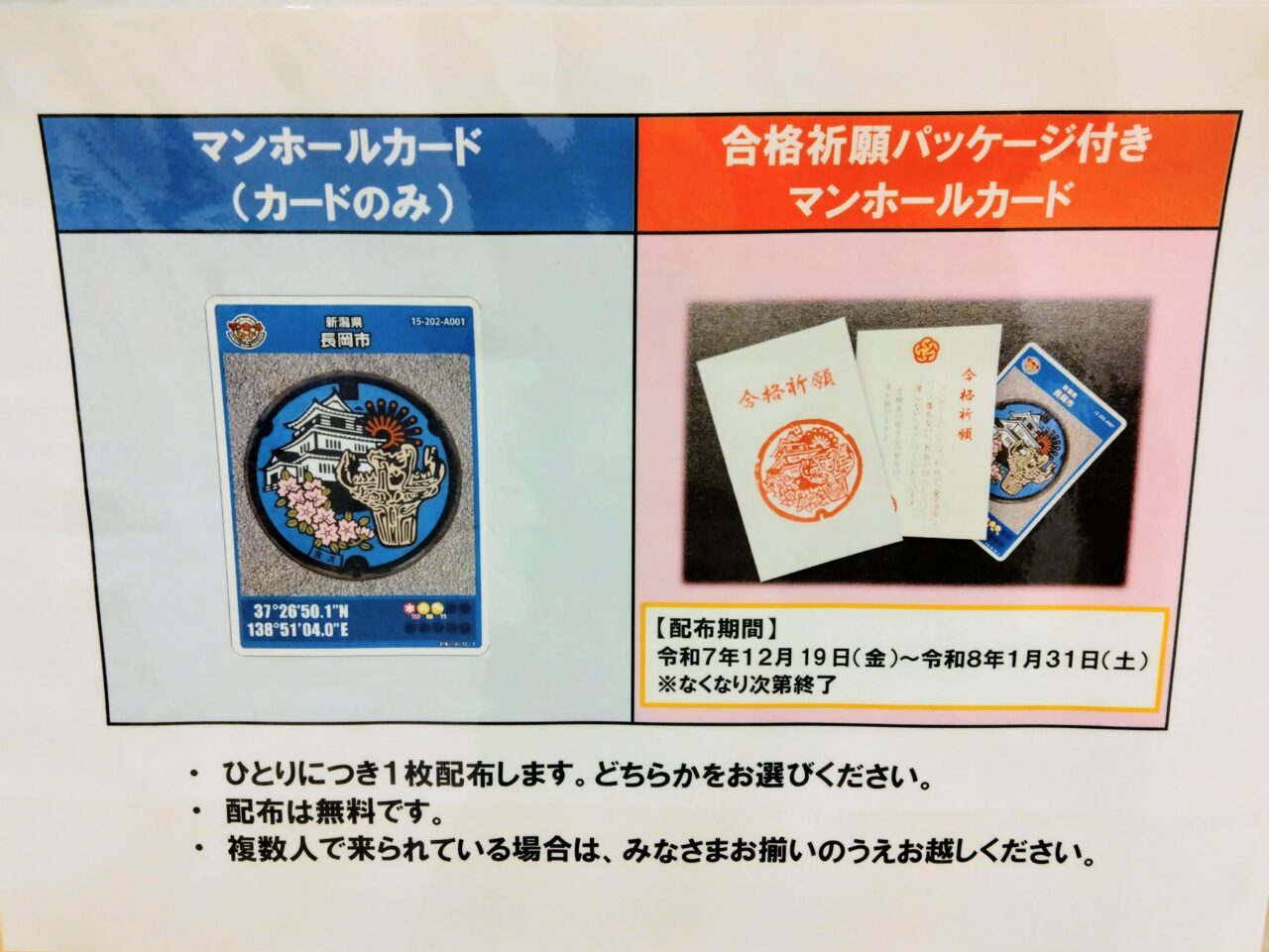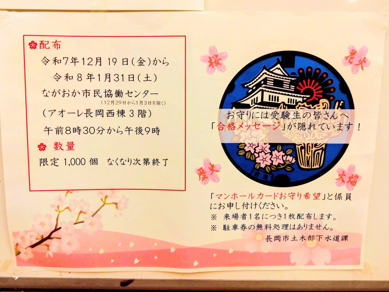 【長岡市】今年度も1月31日まで「合格祈願マンホールカード入りお守り」が配布されています。