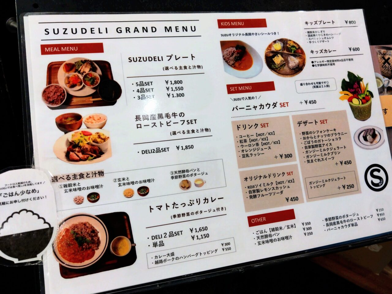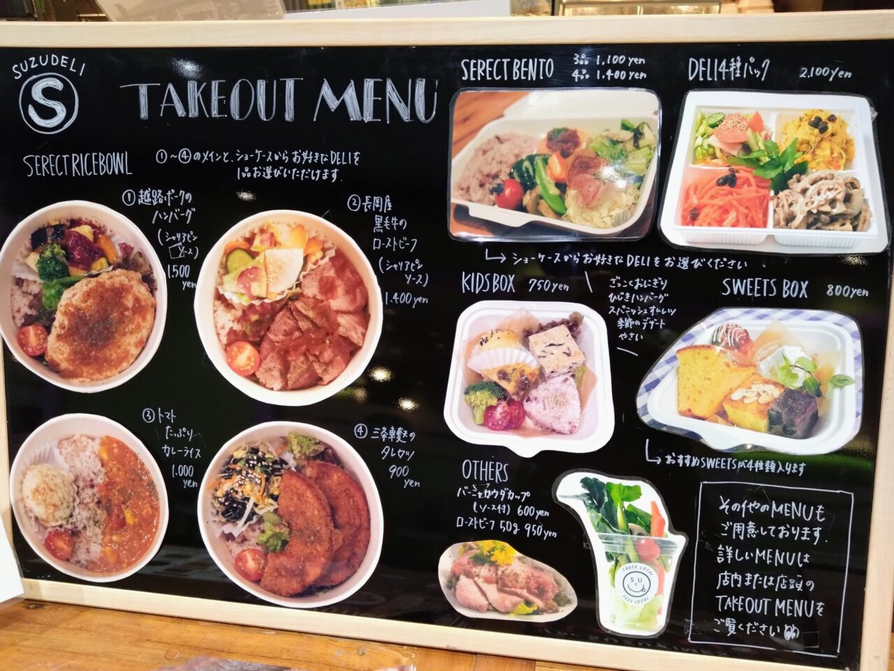人気のSUZUDELIプレートは「5品SET(税込1,800円)」「4品SET(税込1,550円)」「3品SET(税込1,300円)」から選ぶことができます。主食も雑穀米や玄米、天然酵母パンなどから選べるバラエティさが魅力。