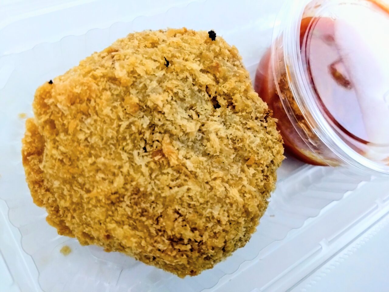 コロッケとしては珍しい、トマトソースをかけて味わうこちらのDELI。この日は単品でテイクアウト。お願いして、トマトソースは別添えにしていただきました。