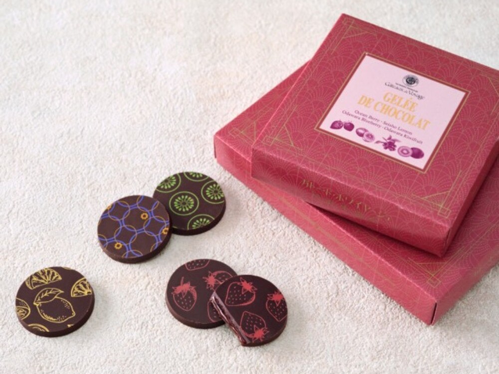 横浜の人気洋菓子店「ガトードボワイヤージュ」の4種のフルーツの「ジュレ・ショコラ」の販売も。チョコレートのセットのほか、焼き菓子の限定セットも。