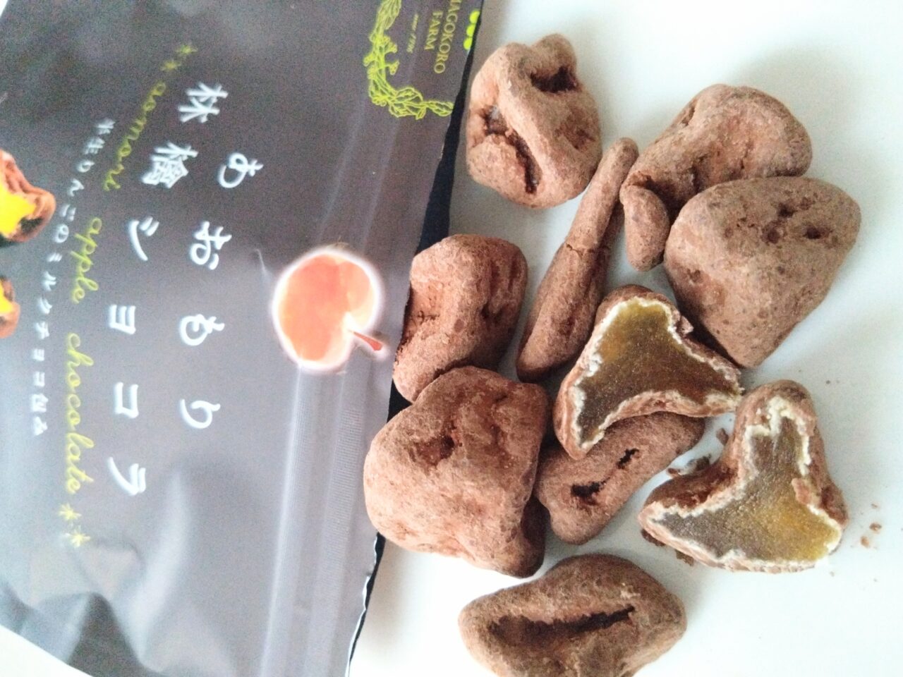 青森のりんごを使用した「あおもり林檎ショコラ」は、半生食感のセミドライりんごをクーベルチュールチョコレートで包んだスイーツ。