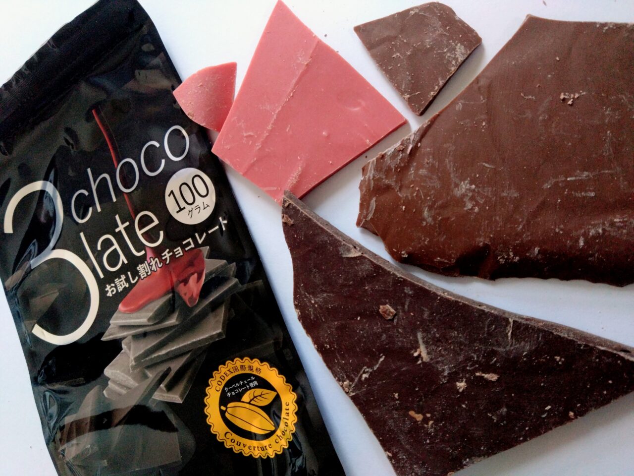 「3種の割れチョコアソート」は国際規格を満たした、クーヴェルチュールチョコレート「ミルク」「リッチストロベリー」「スイート」の3種が入った贅沢な一品。