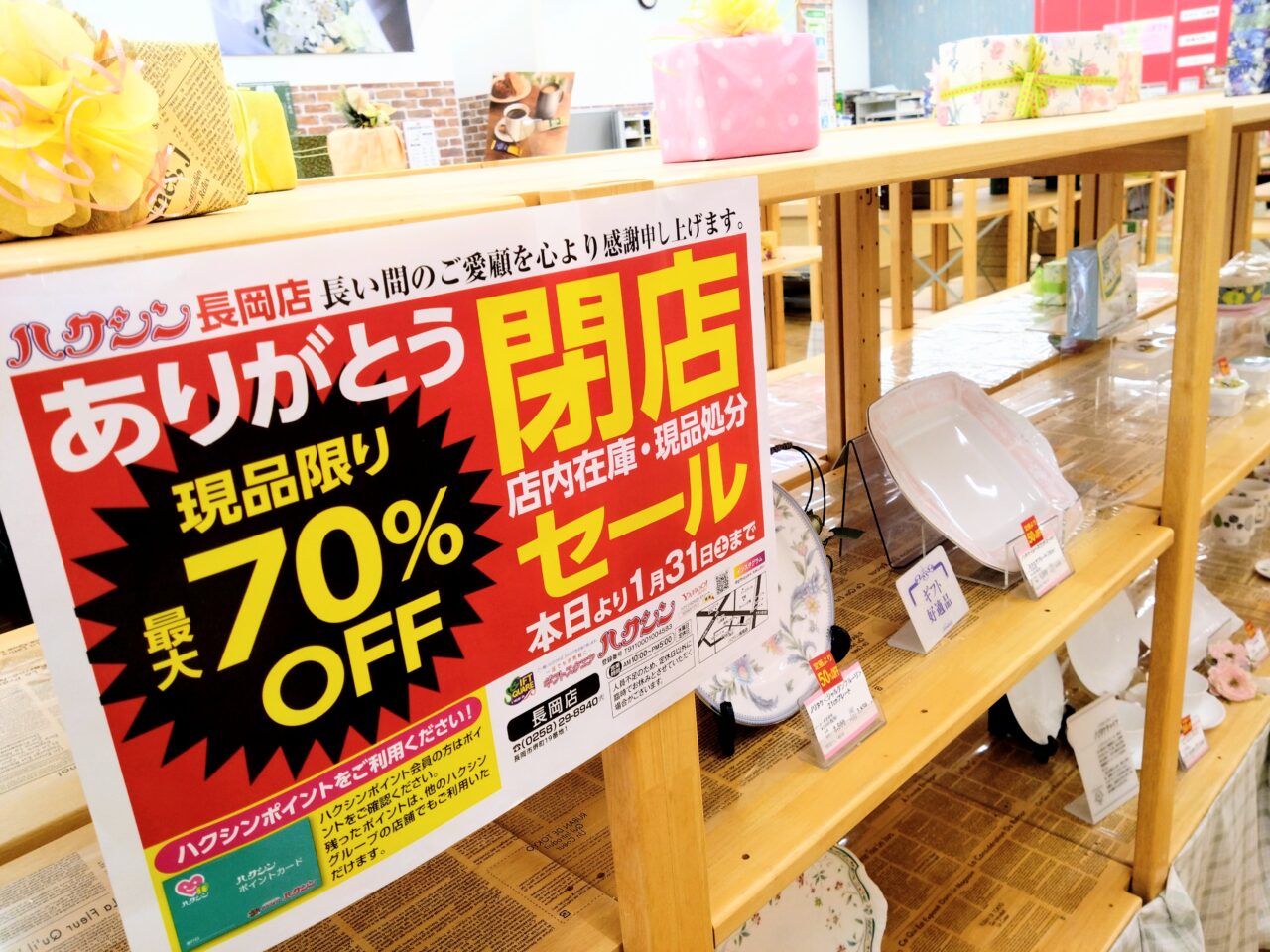 【長岡市】1月31日をもって「ギフトスクエアハクシン 長岡店」の店舗販売のみ終了しますが、今後も他業務など変わらず同じ場所で続行となります。