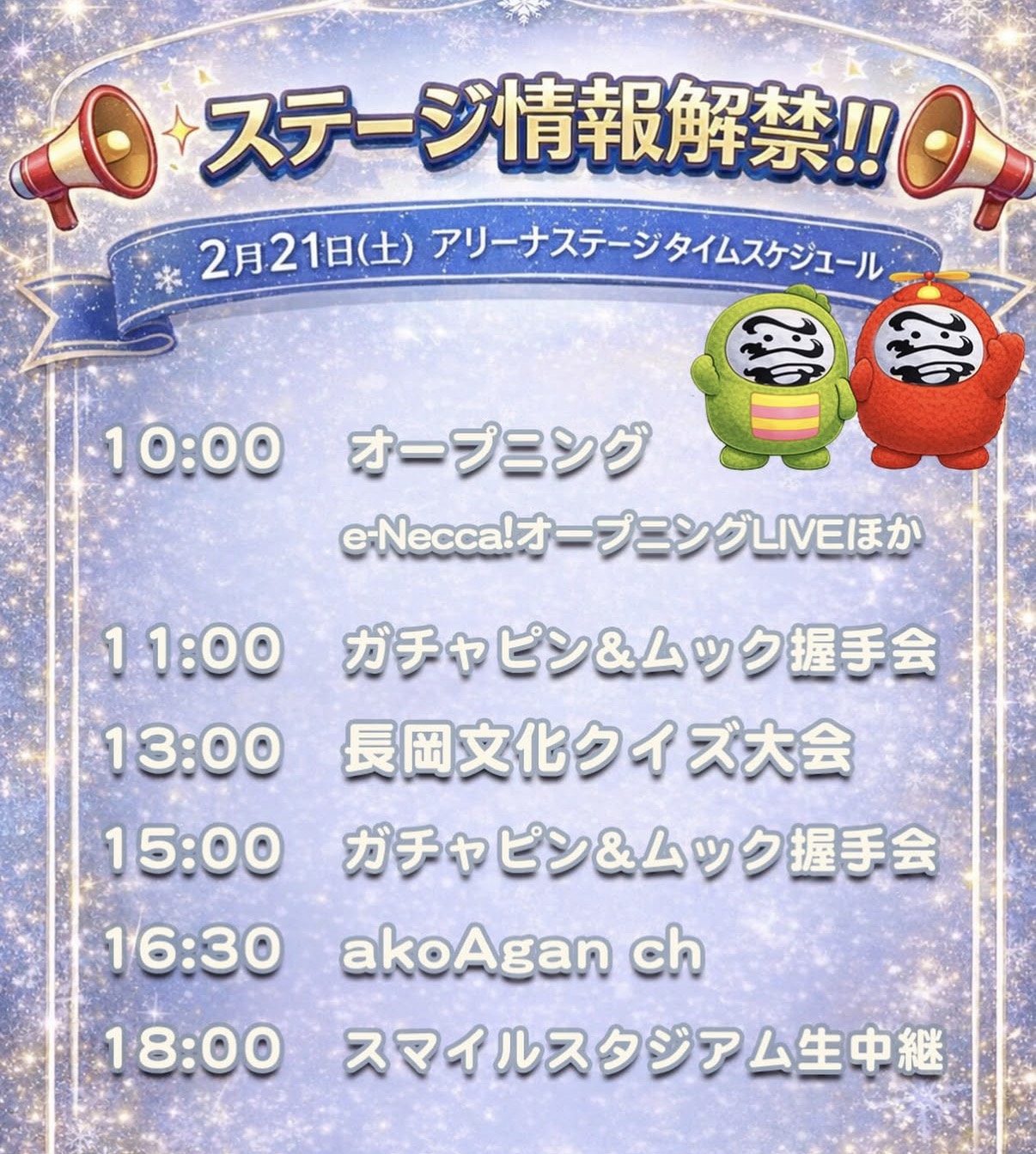 2月21日(土)アリーナステージタイムスケジュール