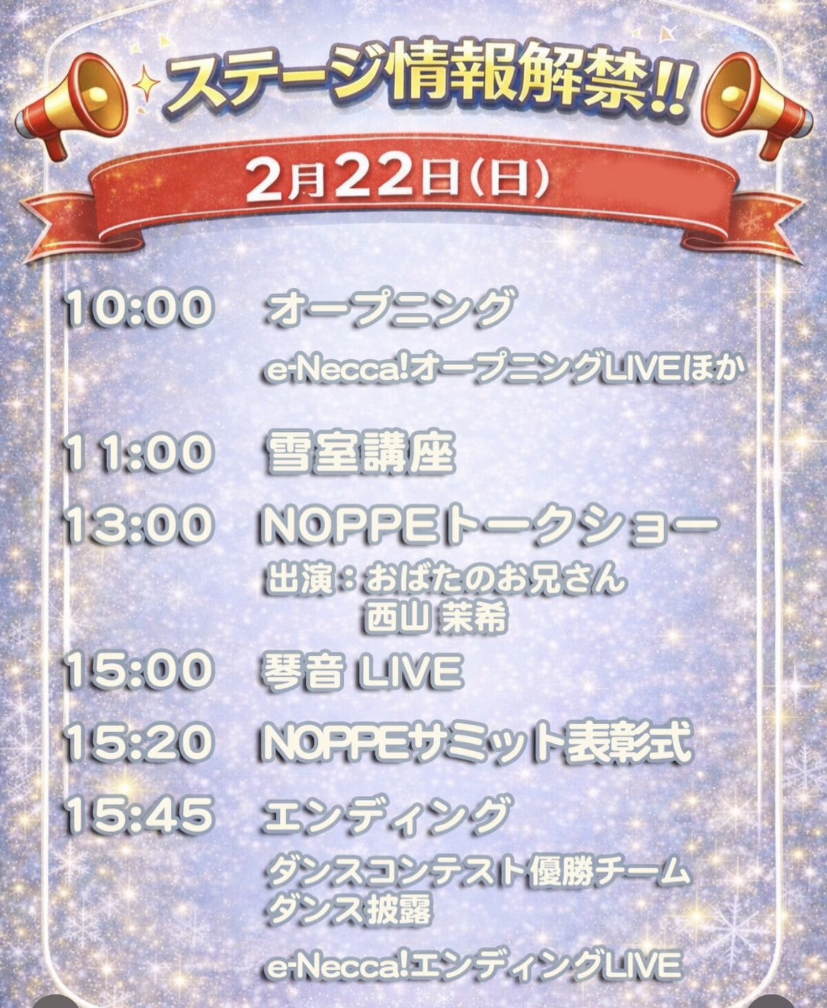 2月22日(日)アリーナステージタイムスケジュール