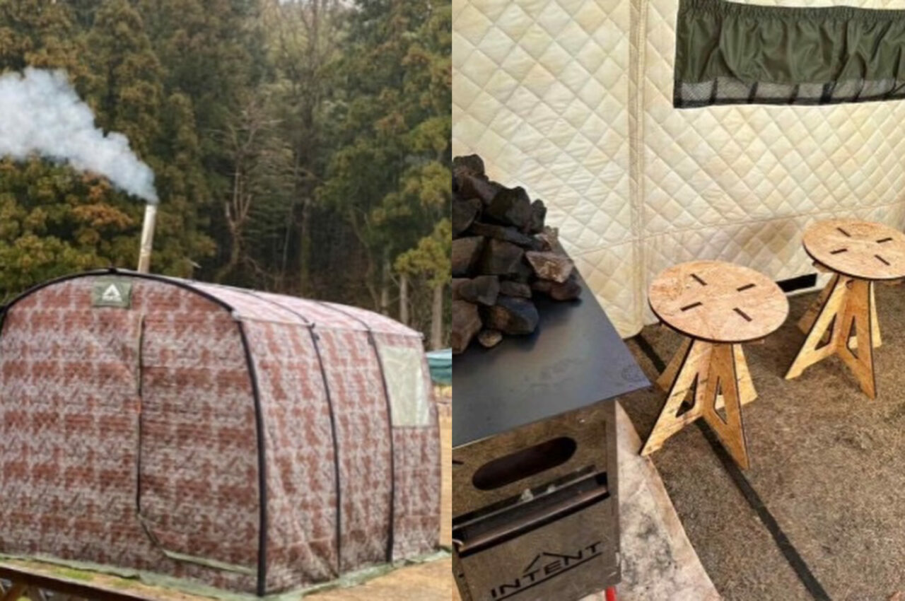 服を着たまま体験できるテントサウナ。