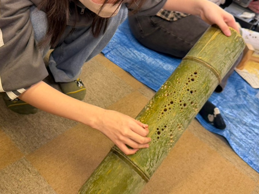 アオーレ長岡となりの城内稲荷神社も、葵高等学院の学生さんたちによって当日は装飾されるとか…。こちらは制作中の竹あかり、どんな仕上がりになるのか楽しみ~!