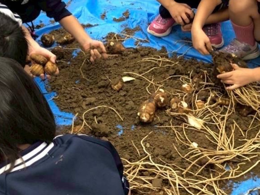 土の中からゴロゴロ出てくる里芋を自分の手で選別。収穫体験した里芋はそのままお土産としてお持ち帰りできます。