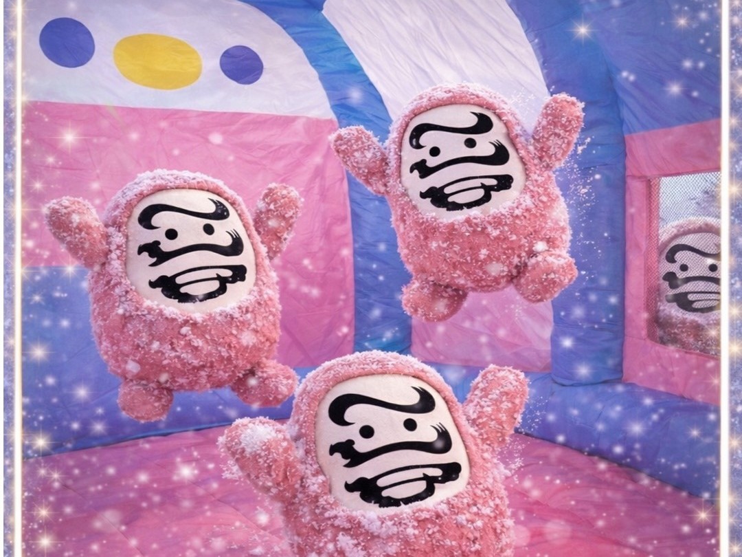 真っ白な雪の中に埋まっているカラーボールを見つけたら、お菓子のプレゼントと交換!