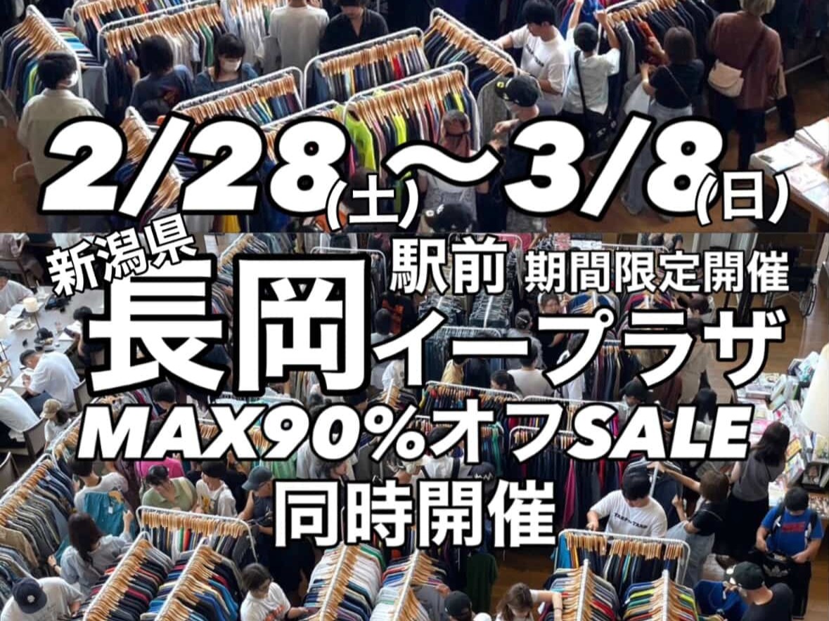 【長岡市】2月28日~3月8日の9日間、最安値0円の古着屋「ツルオカクロージングストア」ことツルクロが、再びイー ・プラザにやってくる!