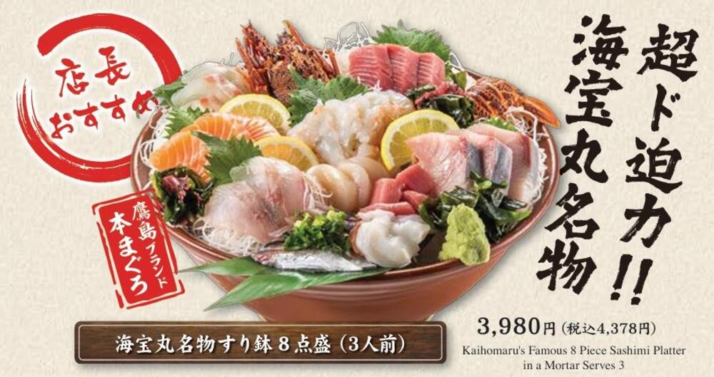 新潟海宝丸 長岡インター店でも人気の「海宝丸名物すり鉢8点盛(3人前)税込4,378円」。こちらの新店舗でも提供されるそうです。