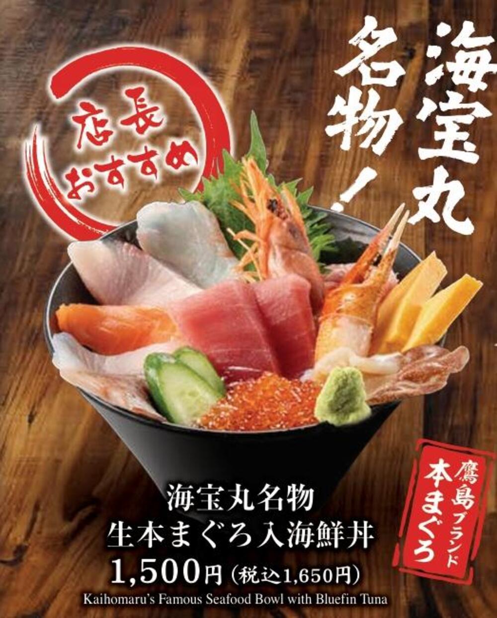 「海宝丸名物 生本まぐろ入海鮮丼(税込1,650円)」など、リーズナブルに新鮮なお刺身が味わえます。