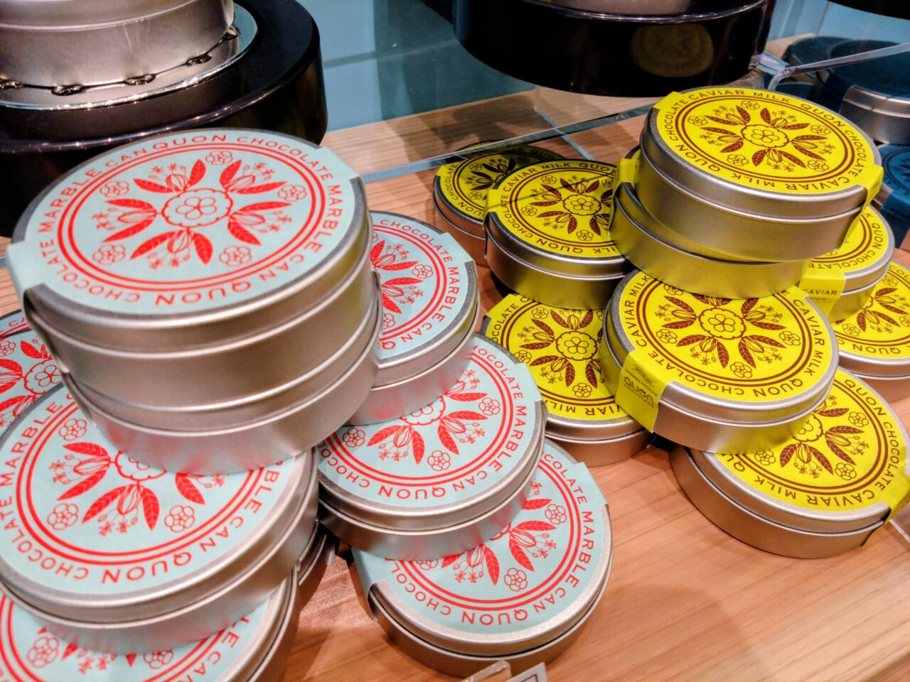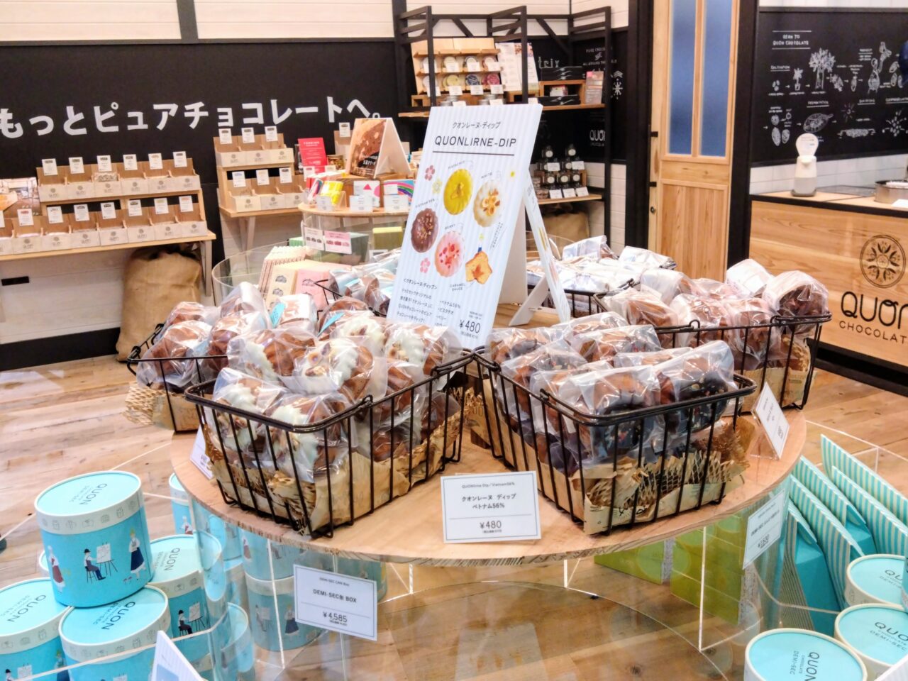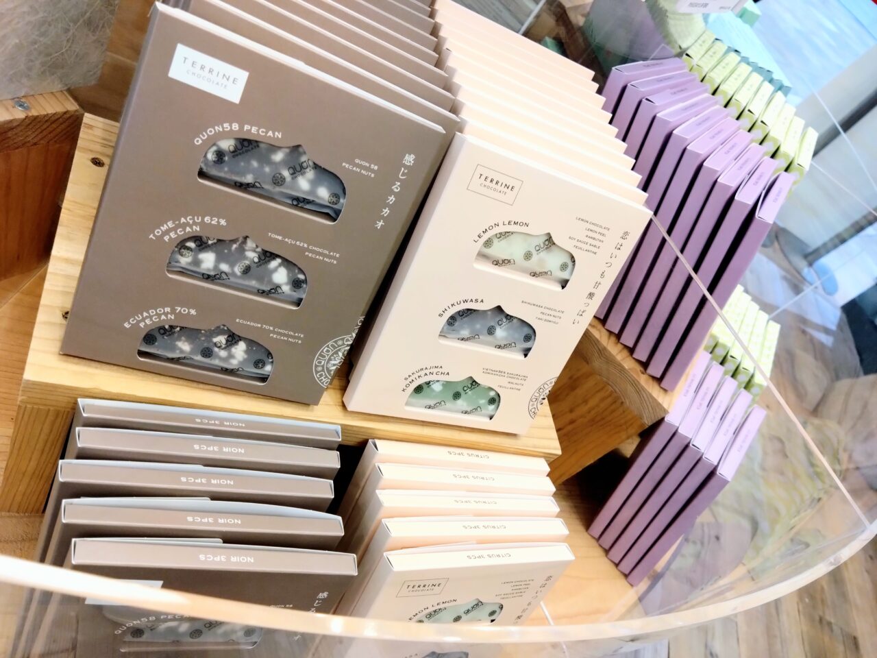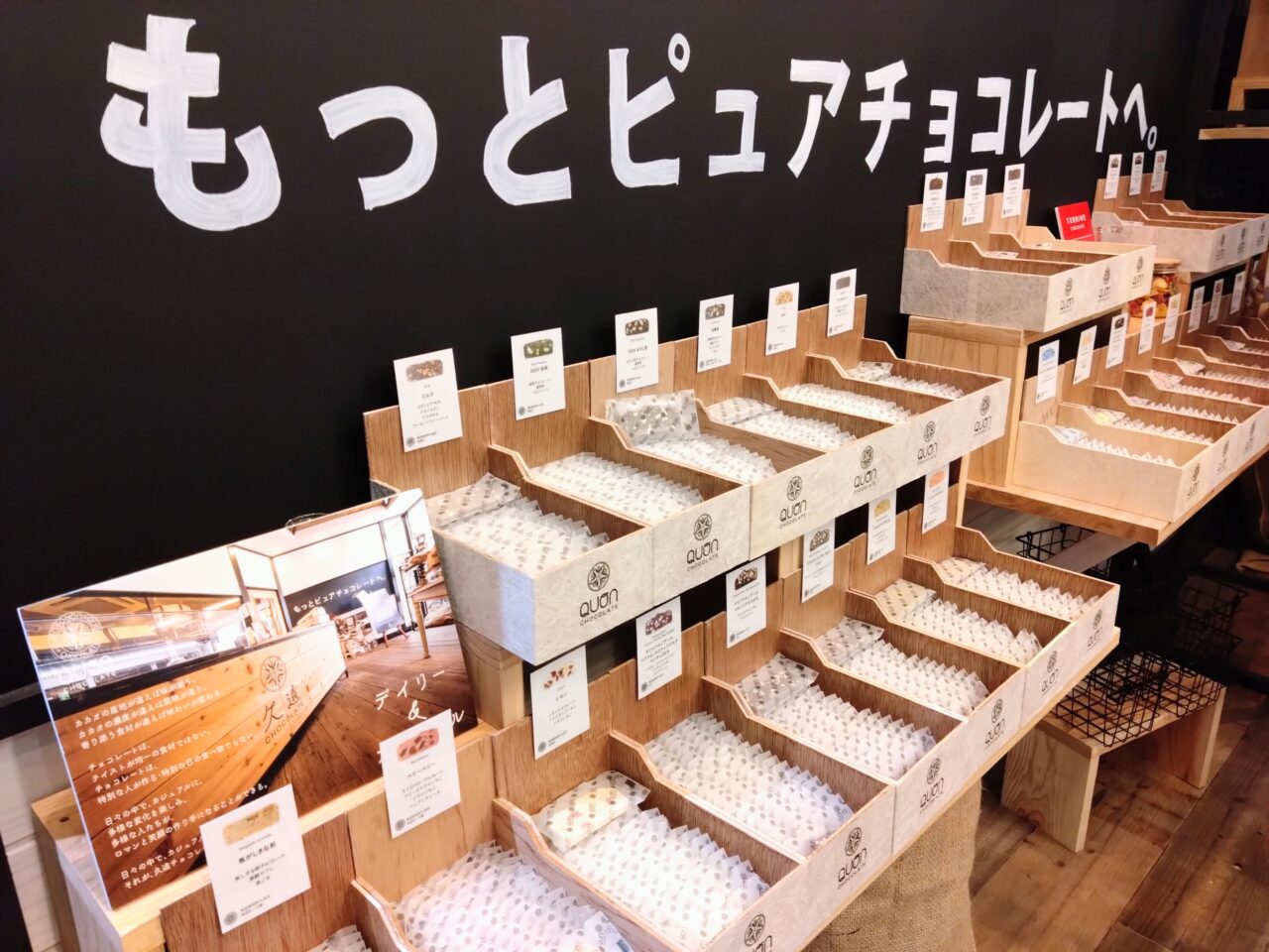 お店の代表的な商品「QUONテリーヌ」は世界各国から厳選したカカオと、日本の再探究により出会った地域の食材をマリアージュしたハンドメイドチョコレート。