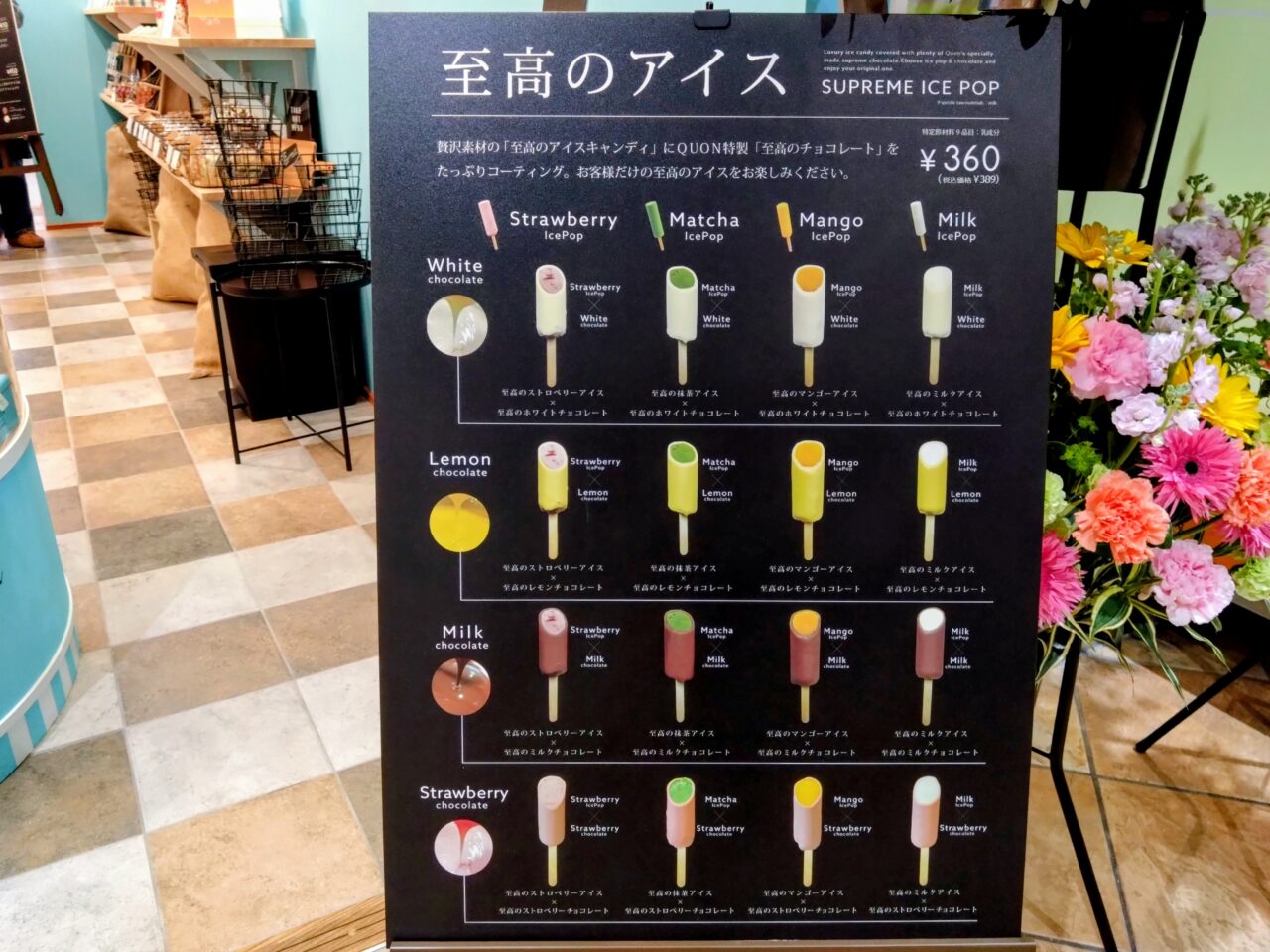 好きなアイスを選んでお客さんが直接こちらのチョコレートにつけて、パリパリチョココーティングをするという楽しい演出。踏み台もあるのでお子さんでも楽しめますよ。