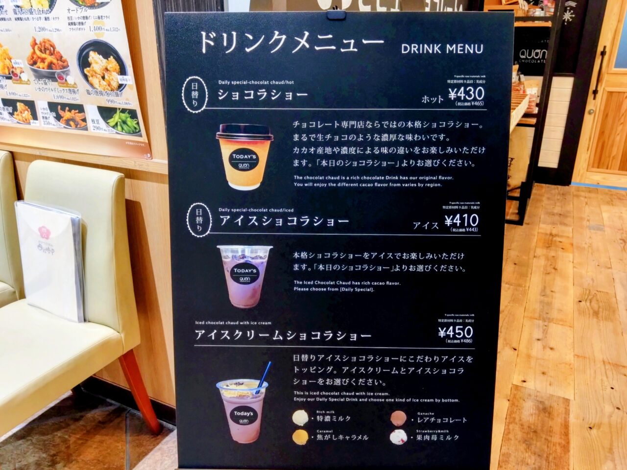 日替わりで楽しめるショコラドリンク「ショコラショー」はホットとアイスのほかに、アイスのトッピングもできます。
