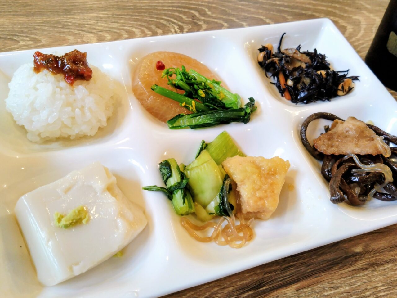 さらに+税込300円で付けられる、おかず6点盛りは日替わりでホッと安心するお惣菜ばかり。おなかいっぱいで心もあったかくなります。