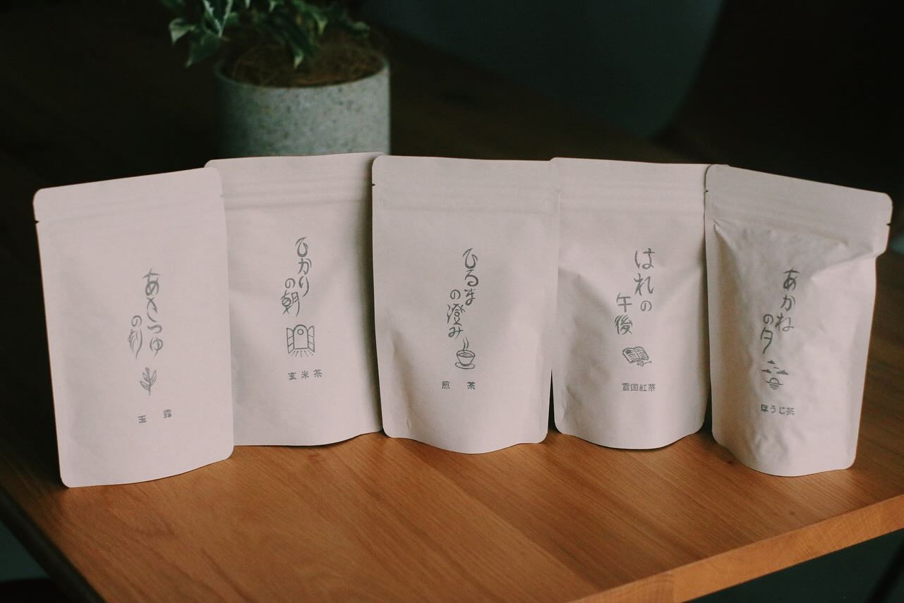 こちらの5種類のお茶はchahho。でも販売もされていて、おうちでゆっくり味わえる50g袋入りと、気軽に楽しめる3gティーバッグから選べますよ。