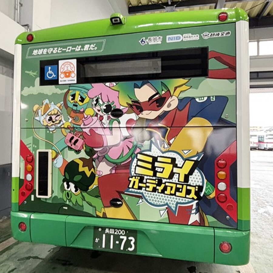 2025年12月26日(金)から「ミライガーディアンズ」のラッピングバスが、中央環状線(くるりん)として長岡市内を運行しています。
