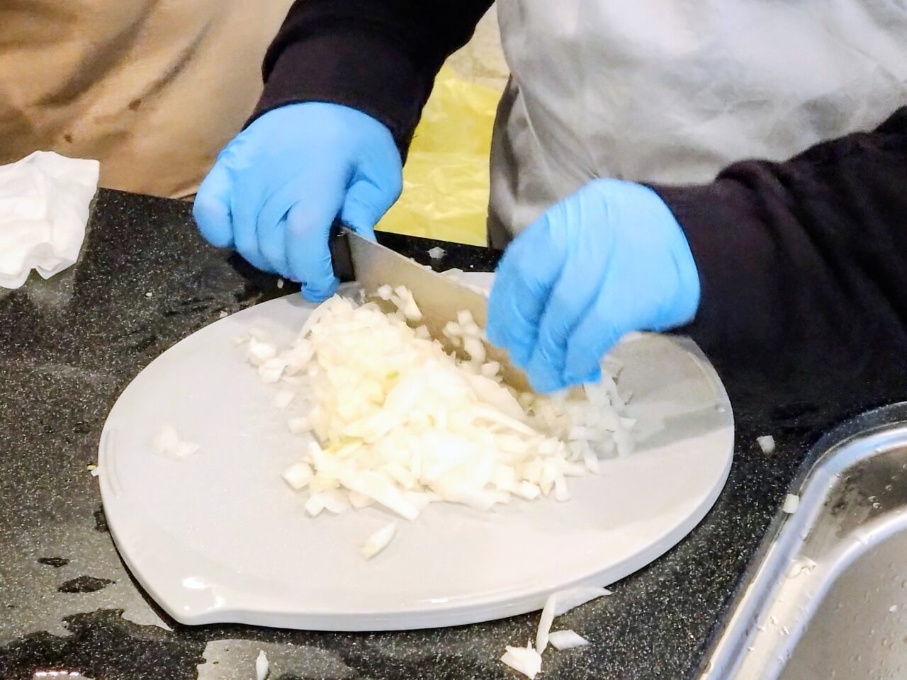 普段なかなかやらない玉ねぎのみじん切りに四苦八苦しながらも、楽しそうに料理をしている子も。この玉ねぎを使って作るのが…