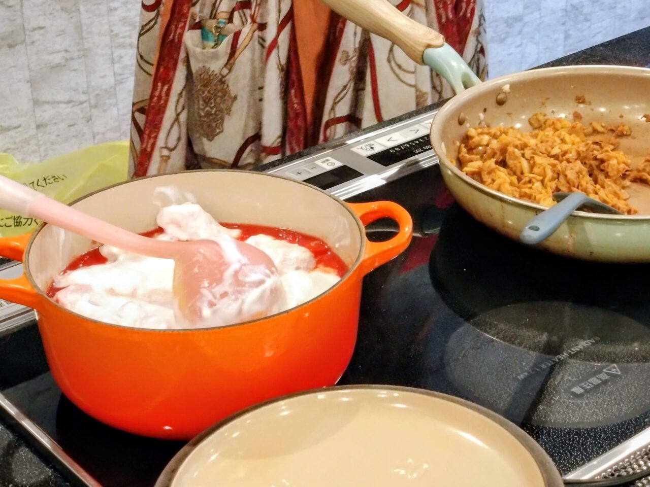 子どもたちがロコモコを進める隣では、大人たちによるバターチキンカレーも仕込まれていました。