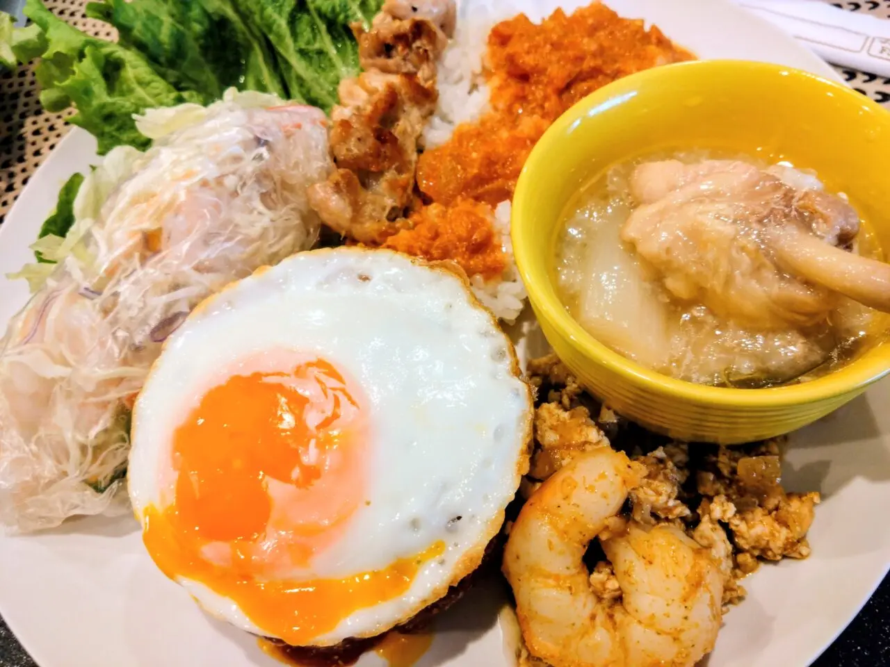 他にもサムゲタンや、中華粥、炊き立てごはんには、もちろん出来立てのバターチキンカレーをたっぷりかけて。