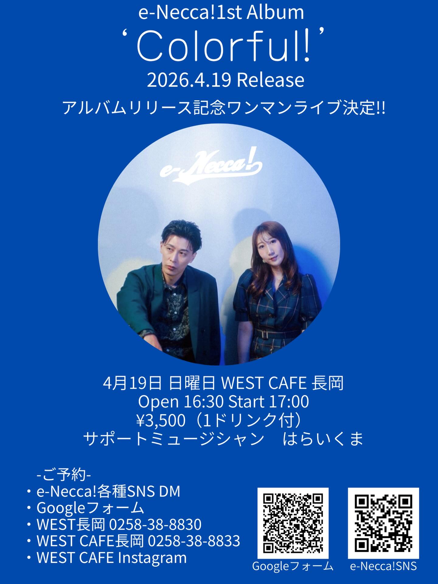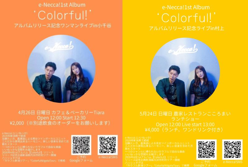 そんなe-Necca!さんが、2026年4月19日(日)に1stアルバム「Colorful!」をリリース! リリースを記念して、新潟県30市町村すべてを巡る「Colorful Niigata Tour(カラフル新潟ツアー)」が開催されます。