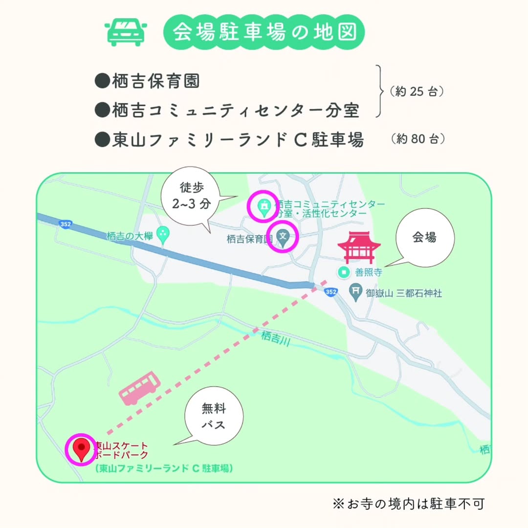 - 普済寺さま駐車場(約10台・徒歩5分ほど)