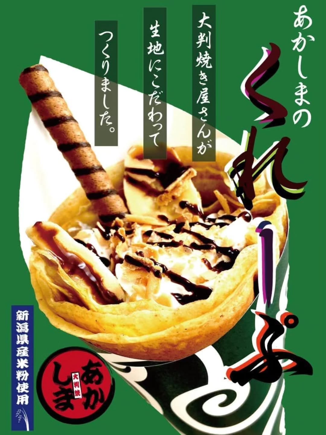 口コミで「生地が美味しい」と評判の、長岡市宮内の住宅街の中にあるお店。大判焼の生地で作ったクレープは7,000人動員のフェスで1,450食も売れた、こだわりのクレープ!
