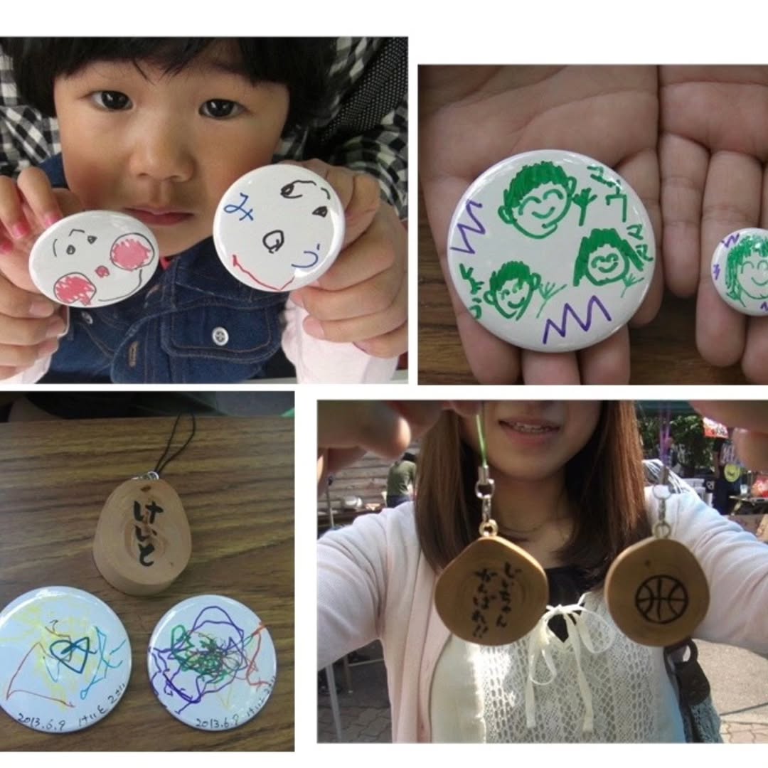 あなたの描いた絵をバッジやストラップにします。なんか変なヘンテコなデザインバッチもあります。