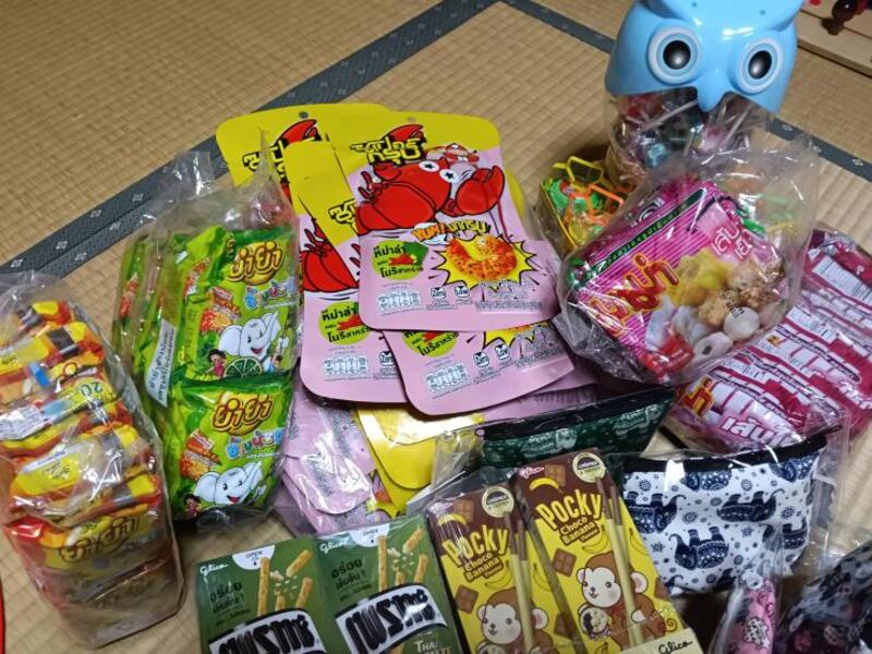 日本ではなかなか目にしない、タイのお菓子やフードが並びます。