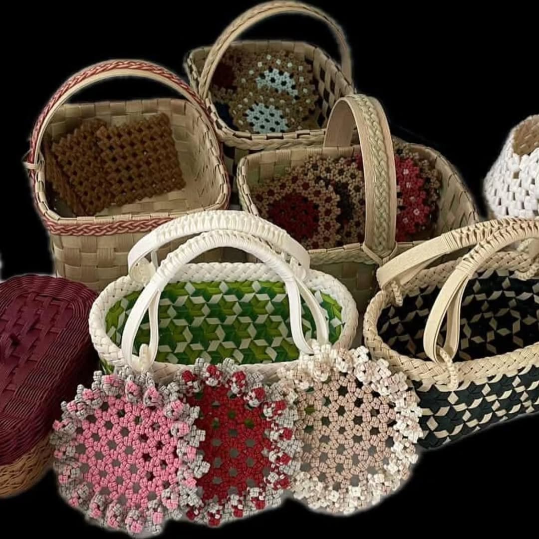 手作りの可愛いバックやかごが並びます。お気に入りをぜひ手に取ってみてください。
