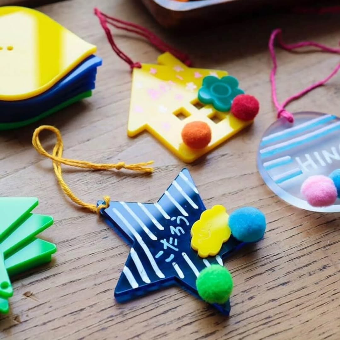 長岡市関原のアクリル加工屋さんでは「お名前キーホルダーづくり(参加費600円)」のワークショップを開催。いろんな形や色のアクリル板から好きなものを選んで、お名前やお絵かきをしてオリジナルのキーホルダーが作れます。