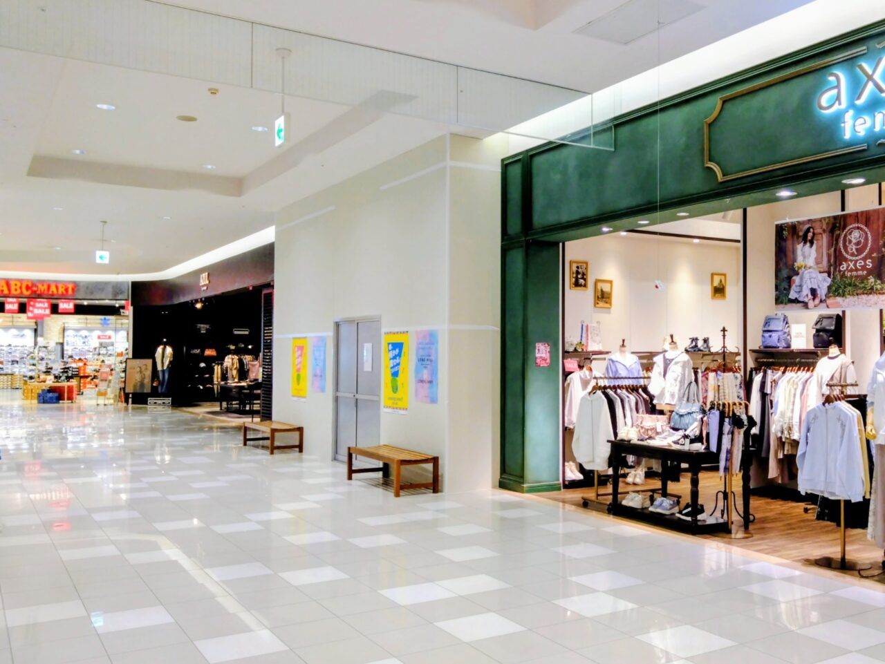 場所は「axes femme(アクシーズ ファム)」と「AZUL BY MOUSSY(アズール バイ マウジー)」の間のこのスペース。2026年2月に閉店した「MALDY(モルディー)」跡地です。