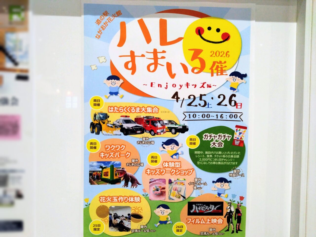 【長岡市】4月25日・26日に「ハレすまいる催2026」が花火館で開催。はたらくくるまやシャカシャカシール作りなどキッズ大喜びのコンテンツが大集合!
